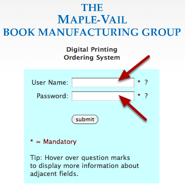 A: Your User Name and Password are identical to codes you use to access your jobs on Maple's website.