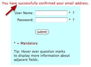 Now that your email address is CONFIRMED, enter your User Name and Password one more time.