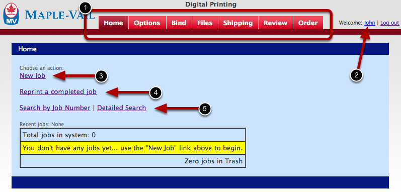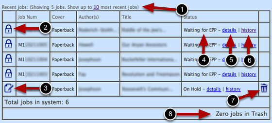 8) If you have one or more jobs in the trash, this area will display the number of jobs in the trash and a link will be available where you can either delete the job or take it out of the trash.