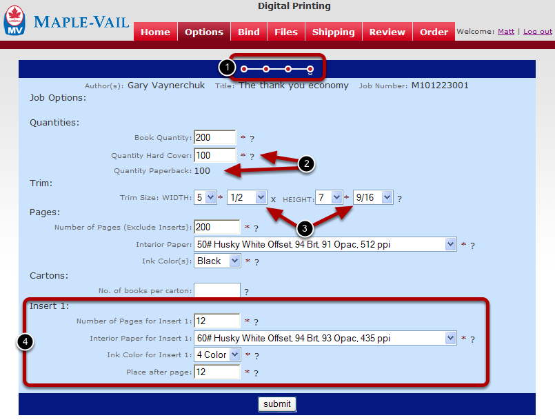 2) These fields will only appear if you chose "SPLIT" on the BOOK TYPE screen. The "Quantity Paperback" field will auto-calculate based on the two fields above it.